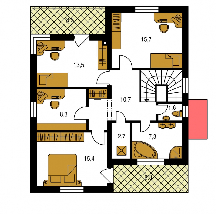 | Surface (au sol) utile au premier étage: | 75,2m2 |