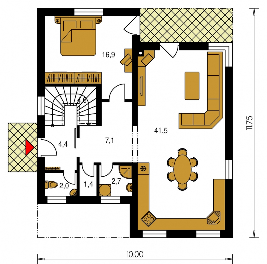 CUBER fait partie de la catégorie des maisons de taille moyenne, pour terrains à largeur moyenne. Adapté aux bâtiments environnants à deux étages. L'espace intérieur de cette maison satisfera les besoins de logement d'une famille de 5-6 personnes. Le salon et la cuisine forment un seul grand espace. Adapté aux terrains plats et légèrement inclinés. La maison dispose d'une cheminée qui produit de la chaleur et qui joue un rôle esthétique irremplaçable. Vous pouvez éviter de monter les escaliers grâce à la chambre au rez-de-chaussée.