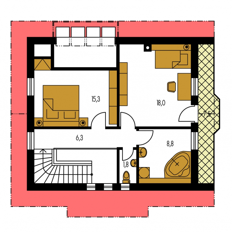 KLASSIK 111 fait partie de la catégorie des petites maisons, pour terrains à largeur moyenne. Espace de vie séparé des chambres. Adapté aux bâtiments environnants à deux étages. L'espace intérieur de cette maison satisfera les besoins de logement d'une famille de 3-4 personnes. Le salon et la cuisine sont séparés. Adapté aux terrains plats et légèrement inclinés. La maison dispose d'une cheminée qui produit de la chaleur et qui joue un rôle esthétique irremplaçable.