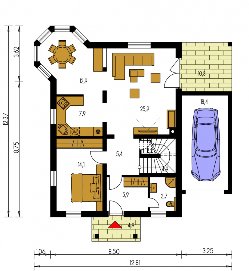 | Surface (au sol) utile au rez-de-chaussée: | 108,2m2 |