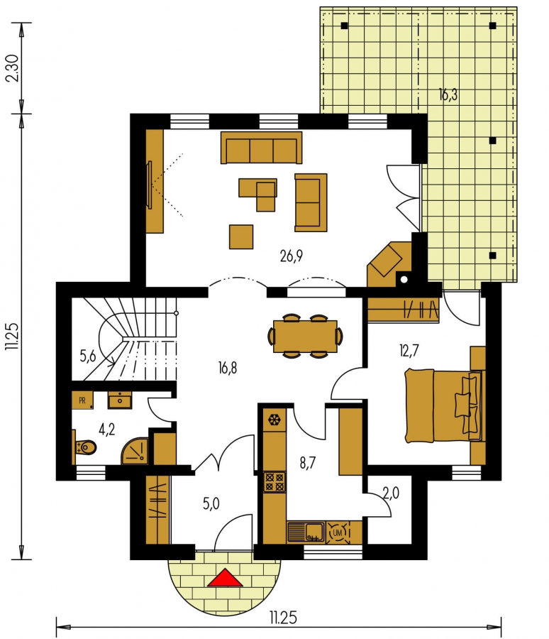 | Surface (au sol) utile au rez-de-chaussée: | 107,5m2 |