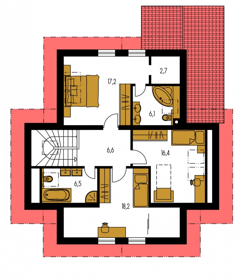 KLASSIK 147 fait partie de la catégorie des grandes maisons, pour terrains à largeur moyenne. Espace de vie séparé des chambres. Adapté aux bâtiments environnants à deux étages. L'espace intérieur de cette maison satisfera les besoins de logement d'une famille de 5-6 personnes. Le salon et la cuisine sont séparés. Adapté aux terrains plats et légèrement inclinés. La maison dispose d'une cheminée qui produit de la chaleur et qui joue un rôle esthétique irremplaçable. Vous pouvez éviter de monter les escaliers grâce à la chambre au rez-de-chaussée.