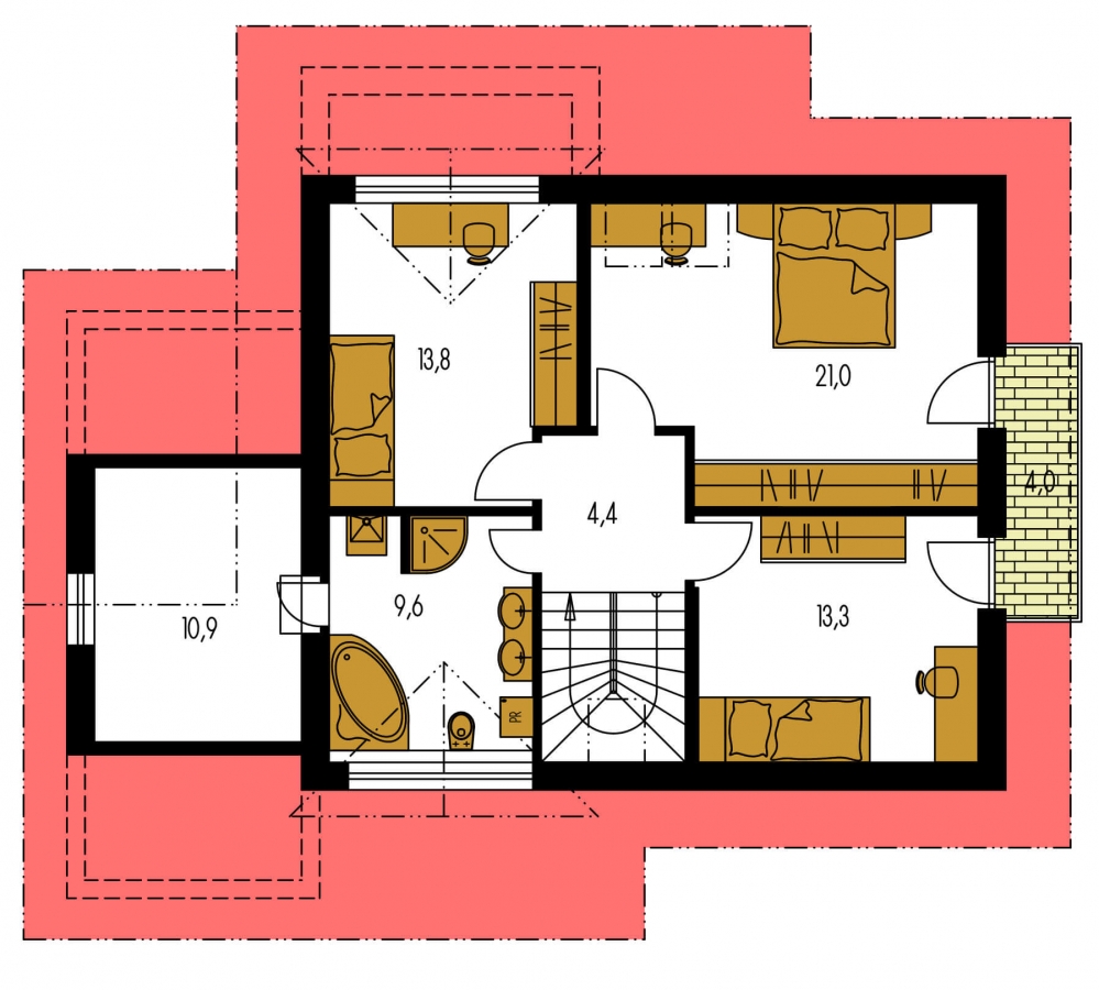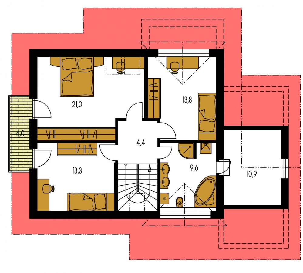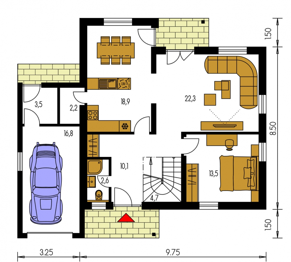 KLASSIK 159 fait partie de la catégorie des grandes maisons, pour terrains à largeur moyenne. Espace de vie séparé des chambres. Adapté aux bâtiments environnants à deux étages. L'espace intérieur de cette maison satisfera les besoins de logement d'une famille de 5-6 personnes. Le salon et la cuisine sont séparés. Adapté aux terrains plats et légèrement inclinés. La maison comprend un grand garage. Vous pouvez éviter de monter les escaliers grâce à la chambre au rez-de-chaussée. Adaptée à la construction mitoyenne grâce à sa forme et à sa disposition.
