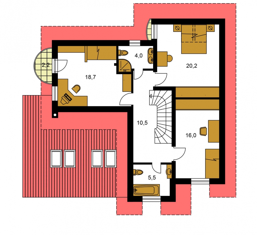 Cette maison de famille appartient à la catégorie de maisons de famille modernes. Mais il vous appartient de décider d'utiliser des matériaux modernes, différents types de revêtements de façade ou d'éléments de décor intérieur. En fin de compte, le propriétaire sera orienté vers une maison de la catégorie MODERNE modifiée par son approche personnalisée de construction ainsi que son utilisation de technologies modernes largement disponibles actuellement.