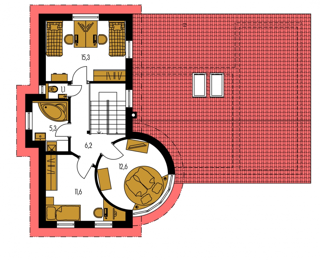 TREND 277 fait partie de la catégorie des grandes maisons, pour terrains plus larges. Adapté aux bâtiments environnants à deux étages. L'espace intérieur de cette maison satisfera les besoins de logement d'une famille de 5 personnes. Le salon et la cuisine forment un seul grand espace. Adapté aux terrains plats et légèrement inclinés. La maison dispose d'une cheminée qui produit de la chaleur et qui joue un rôle esthétique irremplaçable. La maison comprend un grand garage. Vous pouvez éviter de monter les escaliers grâce à la chambre au rez-de-chaussée. Adaptée à la construction mitoyenne grâce à sa forme et à sa disposition.